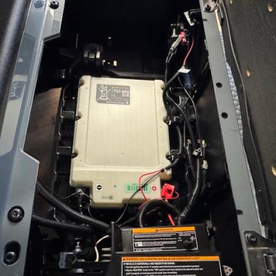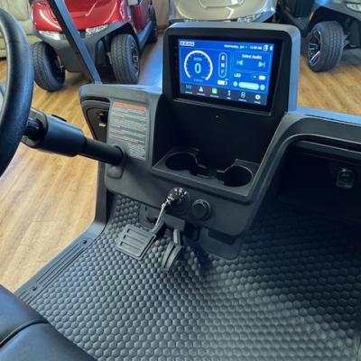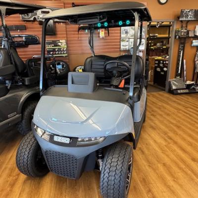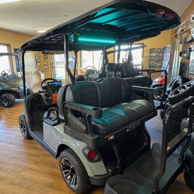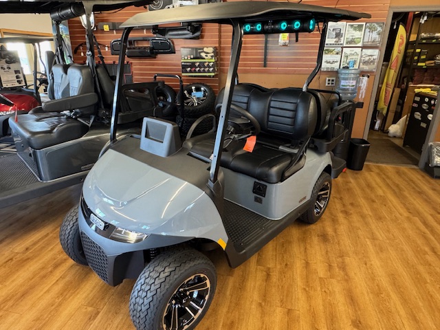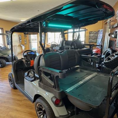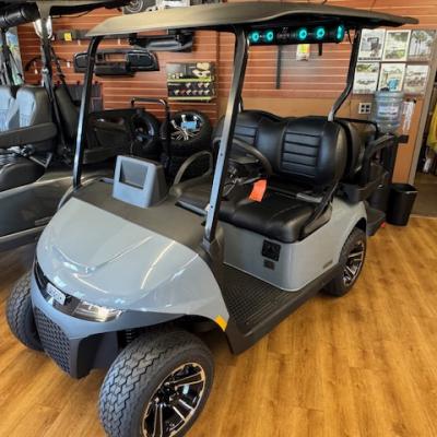 The new EZGO RXV 4 Elite Touring Cart! Non-lifted, premium seats, lights, turn signals, horn, accent lights, USB ports, EcoXgear 10" touchscreen and soundbar, locking glove boxes, back up camera, long top, storage box under rear seat, unique key, mirror, and windshield. Lithium battery has an 8 year warranty!