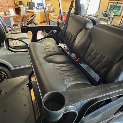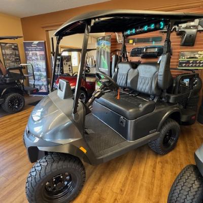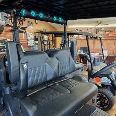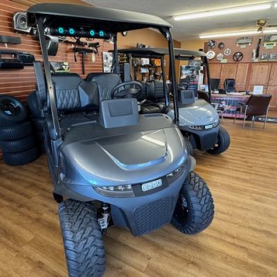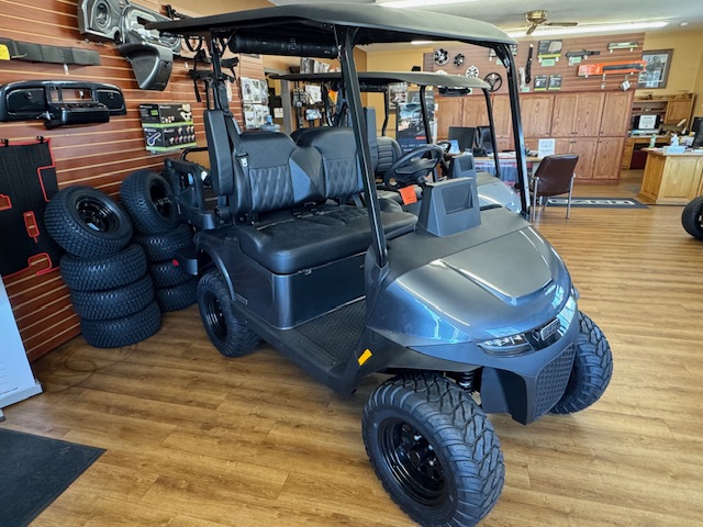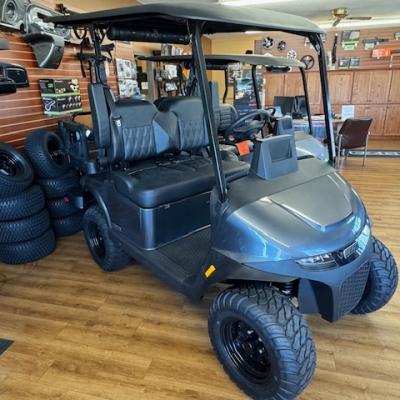 The new RXV 4 Elite has the XLT package which includes a lifted ride height, an EcoXgear 10" touch screen & 28" soundbar, luxury seats with moveable arm rests, lights, turn signals, accent lighting, back up camera, locking gloveboxes, brush guard, fender flares, USB ports and a storage basket. This cart also has a twin pack battery for longer range and an 8 year warranty on them!